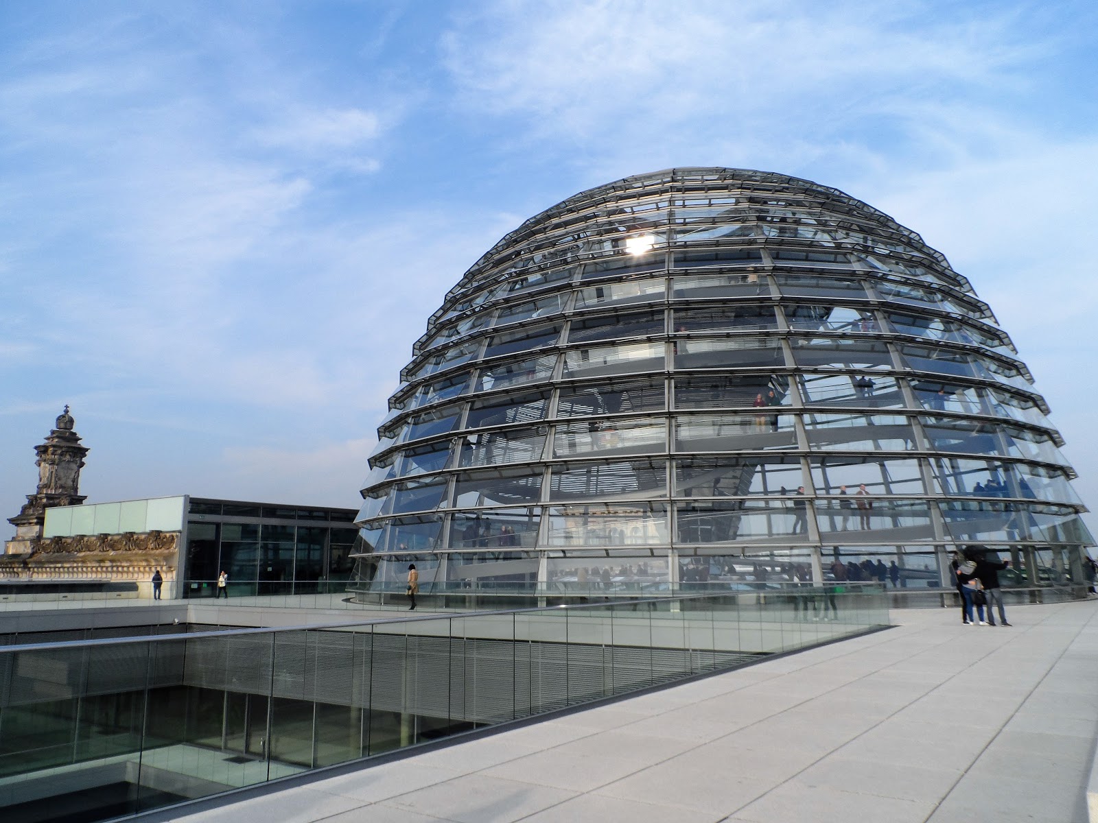 We headed straight to the Reichstag, where we had booked (online) a time slot to visit the glass dome. To get in you went through a rigid security control system, you even have to show your passport (or similar ID). We felt like we were going through an airport! It was designed by British architect Norman Foster giving a 360-degree view across the city. It is accessed by two spiraling staircases (one for up, one for down) and you get an audio guide in the language of your choice, giving you information on the Reichstag building and its surroundings, the Bundestag, the work of Parliament, the construction of the dome and sights you can see as you go up. Even with my fear of heights I made it too the top! It was really interesting and all free